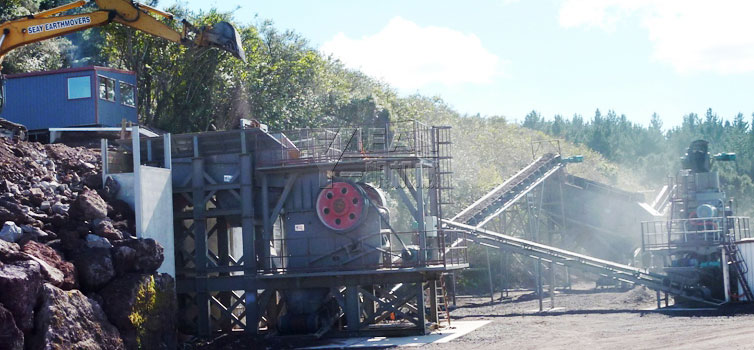This basalt production line in New Zealand is composed of vibrating feeder, jaw crusher, hydraulic cone crusher, vibrating screen and belt conveyor. The whole technological process includes many steps. First is delivering materials into jaw crusher by vibrating feeder for primary crushing. Next, the materials crushed roughly will be screened by vibrating screen. Then qualified materials will be separated while unqualified materials will be delivered into hydraulic cone crusher for secondary crushing and then be screened by vibrating screen again. These procedures form a closed cycle.